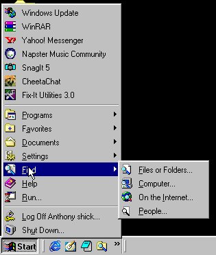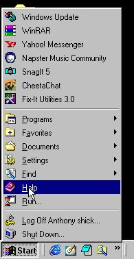 programs within windows.The startmenu consist of shutdown,logoff,run,help,find,setting,documents,