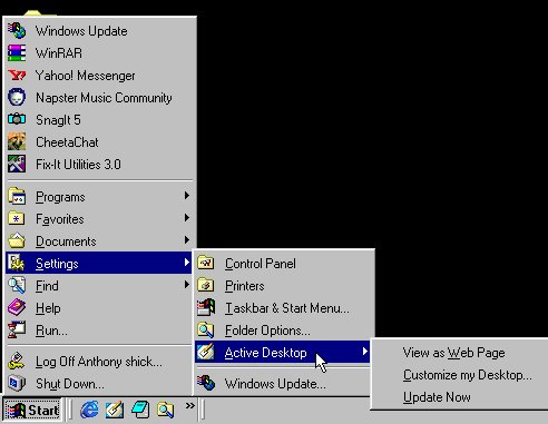 startmenu taskbar,folder options and active desktop.The active desktop is