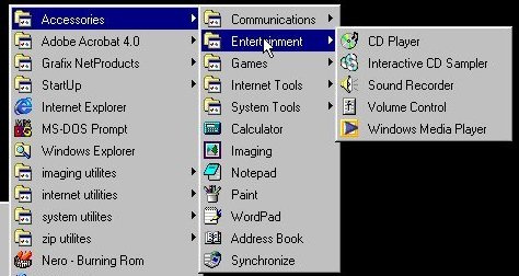 Entertainment contains quicklinks to the cd player,interactive cd sampler,sound recorder,