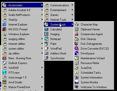 disk defragmenter,drive converter(fat32),drivespace,maintenance wizard and sacndisk,along with the